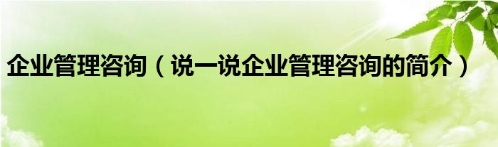 企业管理咨询(说一说企业管理咨询的简介)