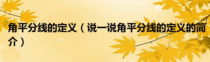 角平分线的定义(说一说角平分线的定义的简介)