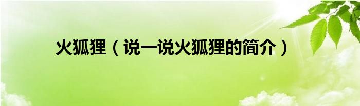 夏弥来为大家解答以下的问题,火狐狸,说一说火狐狸的简介,现在让我们一起来看看吧!