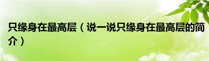 夏弥来为大家解答以下的问题,只缘身在最高层,说一说只缘身在最高层的简介,现在让我们一起来看看吧!