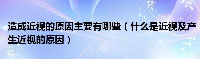 关于造成近视的原因主要有哪些,什么是近视及产生近视的原因这个很多人还不知道,今天菲菲来为大家解答以上的问题,现在让我们一起来看看吧!