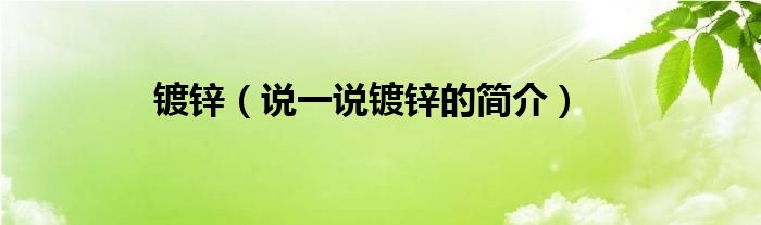 夏弥来为大家解答以下的问题,镀锌,说一说镀锌的简介,现在让我们一起来看看吧!