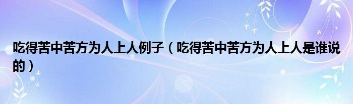 关于吃得苦中苦方为人上人例子,吃得苦中苦方为人上人是谁说的这个很多人还不知道,今天菲菲来为大家解答以上的问题,现在让我们一起来看看吧!