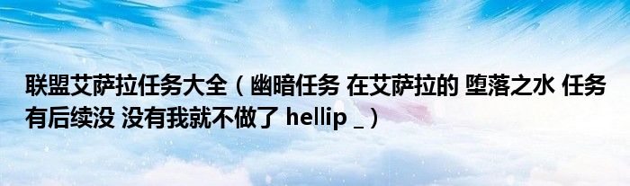 联盟艾萨拉任务大全(幽暗任务 在艾萨拉的 堕落之水 任务有后续没 没有我就不做了 hellip _)