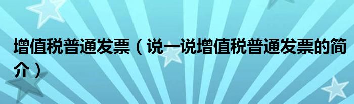 夏弥来为大家解答以下的问题,增值税普通发票,说一说增值税普通发票的简介,现在让我们一起来看看吧!