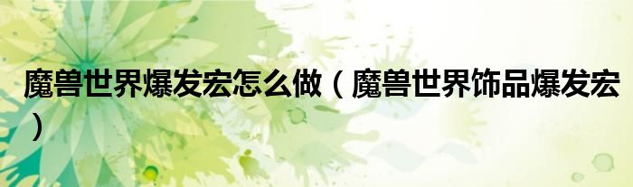 关于魔兽世界爆发宏怎么做,魔兽世界饰品爆发宏这个很多人还不知道,今天菲菲来为大家解答以上的问题,现在让我们一起来看看吧!