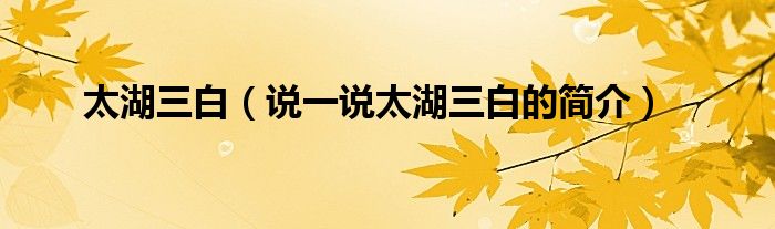 1、太湖三白是指中国太湖的三种河鲜类特产——白鱼、银鱼和白虾,是江苏省常州市武进区(原武进县)、苏州市吴中区(原吴县)和无锡市的地方著名系列菜“太湖船菜”的招牌食材。