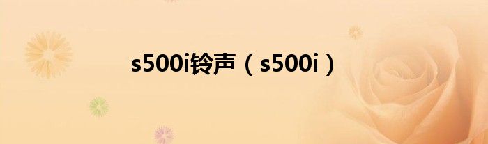 大家好,来宝来为大家解答以下问题,s500i铃声,s500i很多人还不知道,今天让我们一起来看看吧!