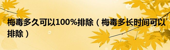 梅毒多久可以100%排除(梅毒多长时间可以排除)