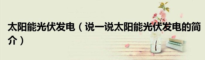 太阳能光伏发电(说一说太阳能光伏发电的简介)