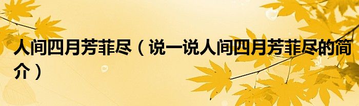 人间四月芳菲尽(说一说人间四月芳菲尽的简介)