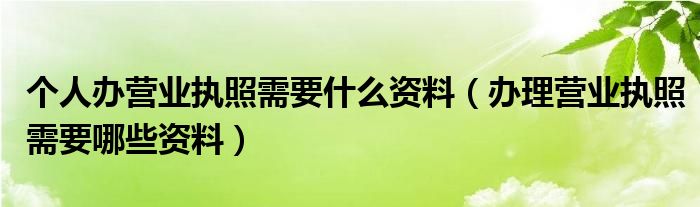 关于个人办营业执照需要什么资料,办理营业执照需要哪些资料这个很多人还不知道,今天菲菲来为大家解答以上的问题,现在让我们一起来看看吧!