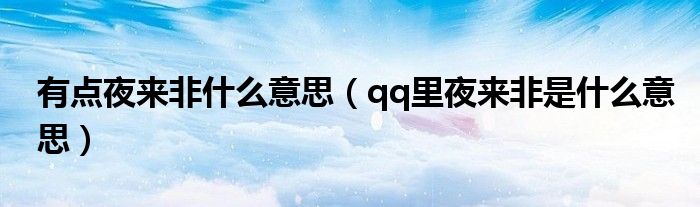 大家好,小晋来为大家解答以下问题,关于有点夜来非什么意思,qq里夜来非是什么意思很多人还不知道,今天让我们一起来看看吧!