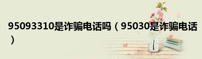 关于95093310是诈骗电话吗,95030是诈骗电话这个很多人还不知道,今天菲菲来为大家解答以上的问题,现在让我们一起来看看吧!