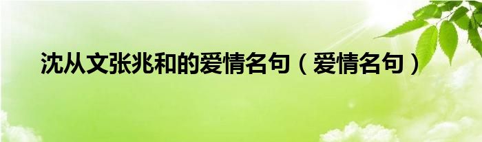关于沈从文张兆和的爱情名句,爱情名句这个很多人还不知道,今天菲菲来为大家解答以上的问题,现在让我们一起来看看吧!