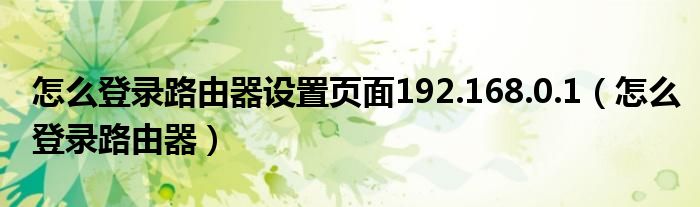 怎么登录路由器设置页面192.168.0.1(怎么登录路由器)