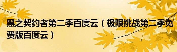 关于黑之契约者第二季百度云,极限挑战第二季免费版百度云这个很多人还不知道,今天菲菲来为大家解答以上的问题,现在让我们一起来看看吧!