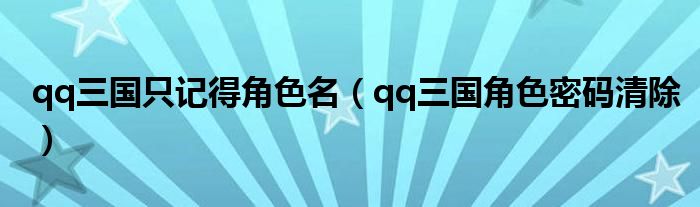 大家好,小联来为大家解答以上的问题。qq三国只记得角色名,qq三国角色密码清除这个很多人还不知道,现在让我们一起来看看吧!