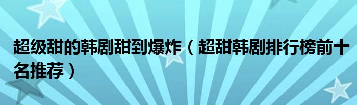 关于超级甜的韩剧甜到爆炸,超甜韩剧排行榜前十名推荐这个很多人还不知道,今天菲菲来为大家解答以上的问题,现在让我们一起来看看吧!