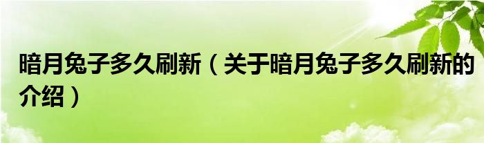 大家好,小夏来为大家解答以上的问题。暗月兔子多久刷新,关于暗月兔子多久刷新的介绍很多人还不知道,现在让我们一起来看看吧!