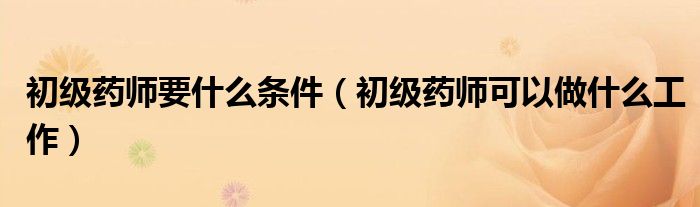 初级药师要什么条件(初级药师可以做什么工作)
