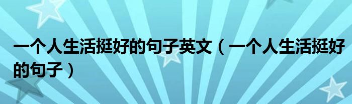 大家好,小晋来为大家解答以下问题,关于一个人生活挺好的句子英文,一个人生活挺好的句子很多人还不知道,今天让我们一起来看看吧!