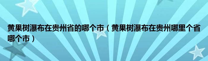 大家好,小夏来为大家讲解下。黄果树瀑布在贵州省的哪个市,黄果树瀑布在贵州哪里个省哪个市很多人还不知道,现在让我们一起来看看吧!