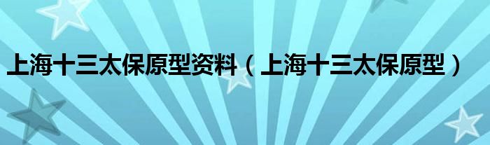 1、上海十三太保原型是谁?