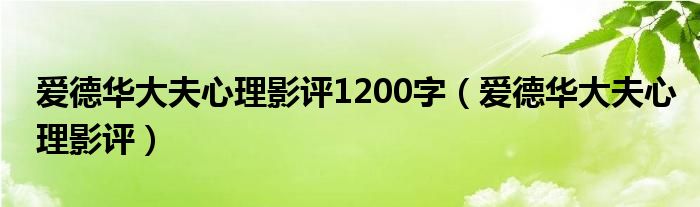 爱德华大夫心理影评1200字(爱德华大夫心理影评)
