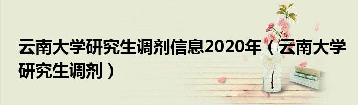 大家好,小晋来为大家解答以下问题,关于云南大学研究生调剂信息2020年,云南大学研究生调剂很多人还不知道,今天让我们一起来看看吧!