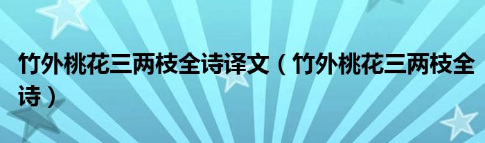 竹外桃花三两枝全诗译文(竹外桃花三两枝全诗)