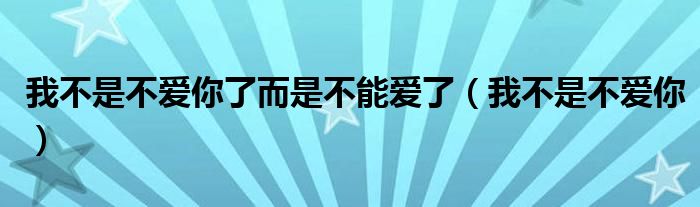 大家好,我是小科,我来为大家解答以上问题。我不是不爱你了而是不能爱了,我不是不爱你很多人还不知道,现在让我们一起来看看吧!
