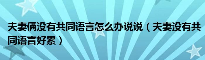 夫妻俩没有共同语言怎么办说说(夫妻没有共同语言好累)