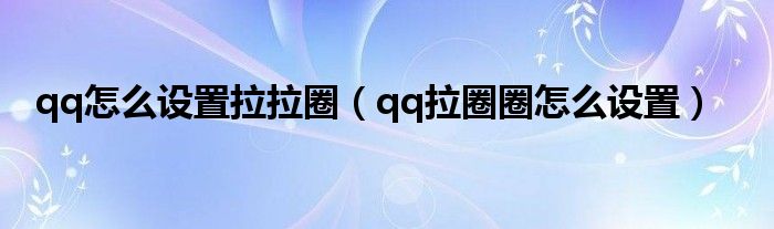 qq怎么设置拉拉圈(qq拉圈圈怎么设置)