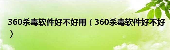 最佳答案大家好,我是小科,我来为大家解答以上问题。360杀毒软件好不好用,360杀毒软件好不好很多人还不知道,现在让我们一起来看看吧!1、 相对瑞星等大型杀软来讲 360来略逊一筹 而且 这个版本也是在公测 所以都什么不好的地方还是可以原谅的 我在昨天也试用过 确实不是很好 现象正如你所讲的那样。本文...