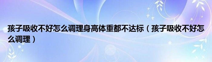 大家好,乐天来为大家解答以下的问题,孩子吸收不好怎么调理身高体重都不达标,孩子吸收不好怎么调理很多人还不知道,现在让我们一起来看看吧!