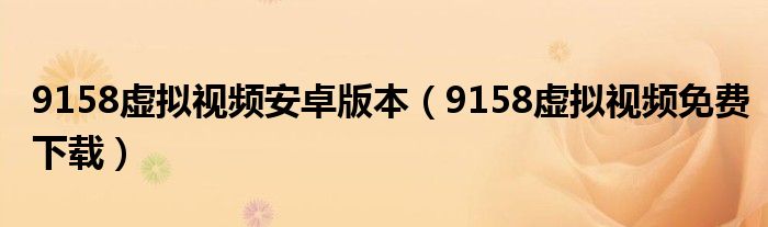 今天小饼为大家解答以下问题,关于9158虚拟视频安卓版本,9158虚拟视频免费下载很多人还不知道,现在让我们一起来看看吧!