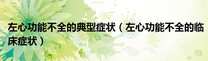 大家好,乐天来为大家解答以下的问题,左心功能不全的典型症状,左心功能不全的临床症状很多人还不知道,现在让我们一起来看看吧!
