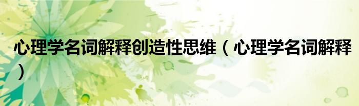 最佳答案大家好,我是小科,我来为大家解答以上问题。心理学名词解释创造性思维,心理学名词解释很多人还不知道,现在让我们一起来看看吧!1、心理学是研究人和动物心理现象发生、发展和活动规律的一门科学。本文到此讲解完毕了,希望对大家有帮助。