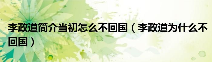 李政道简介当初怎么不回国(李政道为什么不回国)