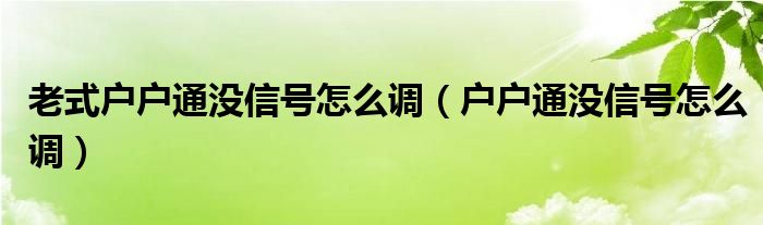 2、没有信号怎么调户口?