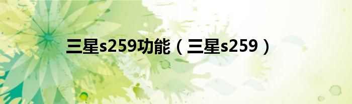 大家好,来宝来为大家解答以下问题,三星s259功能,三星s259很多人还不知道,今天让我们一起来看看吧!