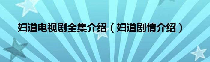 大家好,小晋来为大家解答以下问题,关于妇道电视剧全集介绍,妇道剧情介绍很多人还不知道,今天让我们一起来看看吧!