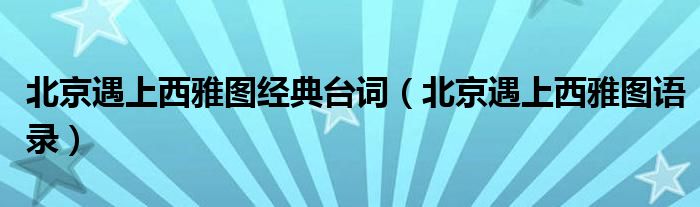 大家好,小晋来为大家解答以下问题,关于北京遇上西雅图经典台词,北京遇上西雅图语录很多人还不知道,今天让我们一起来看看吧!