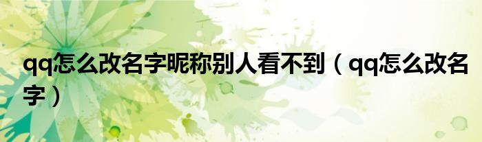 大家好,来宝来为大家解答以下问题,qq怎么改名字昵称别人看不到,qq怎么改名字很多人还不知道,今天让我们一起来看看吧!