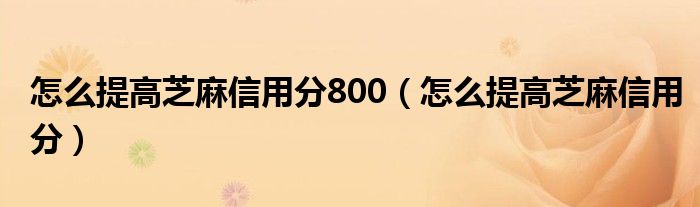大家好,小晋来为大家解答以下问题,关于怎么提高芝麻信用分800,怎么提高芝麻信用分很多人还不知道,今天让我们一起来看看吧!
