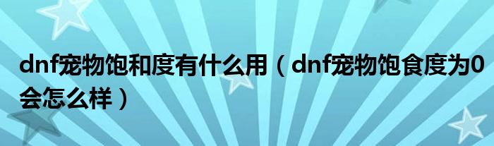 大家好,小晋来为大家解答以下问题,关于dnf宠物饱和度有什么用,dnf宠物饱食度为0会怎么样很多人还不知道,今天让我们一起来看看吧!