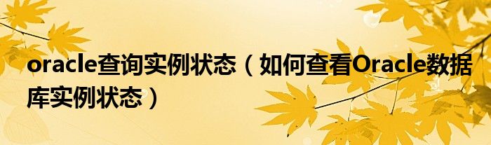 oracle查询实例状态(如何查看Oracle数据库实例状态)
