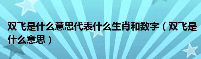 双飞是什么意思代表什么生肖和数字(双飞是什么意思)