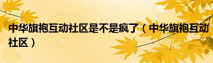 关于中华旗袍互动社区是不是疯了,中华旗袍互动社区这个很多人还不知道,今天菲菲来为大家解答以上的问题,现在让我们一起来看看吧!